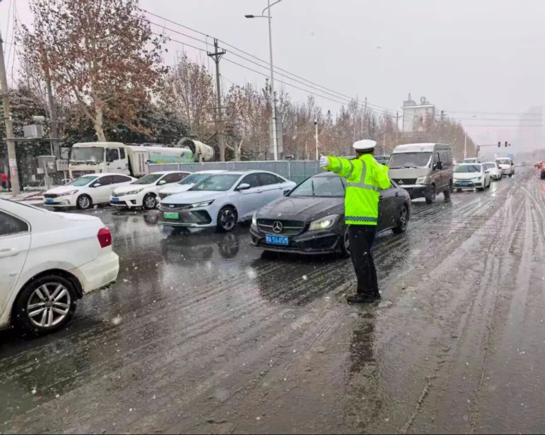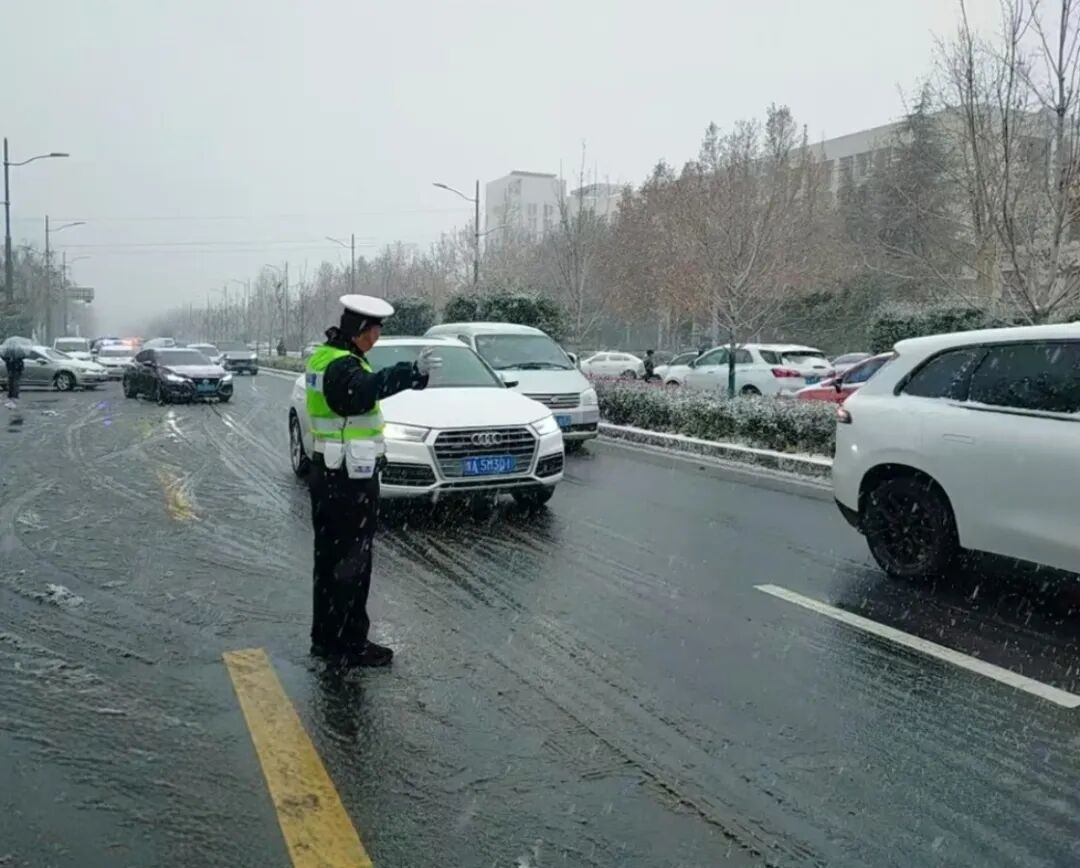 滎陽交警大隊民輔警在雨雪天氣中堅守崗位,全力保障轄區道路通行安全。他們在重點路口路段疏導交通、指揮車輛有序通行,深入排查雨雪天氣下的道路安全隱患,積極協助清除路面積雪、救援受困車輛,用實際行動筑牢雨雪天氣交通安全防線,守護群眾出行平安。(來源:滎陽市公安局交通管理大隊)