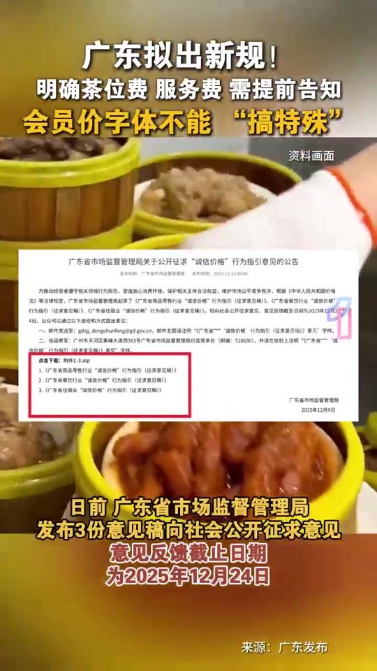 日前,《廣東省商品零售行業“誠信價格”行為指引(征求意見稿)》《廣東省餐飲行業“誠信價格”行為指引(征求意見稿)》《廣東省住宿業“誠信價格”行為指引(征求意見稿)》3份意見稿向社會公開征求意見,意見反饋截止日期為2025年12月24日。