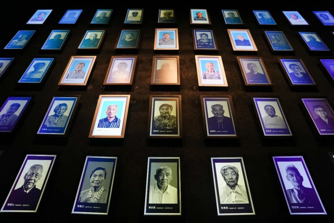 12月5日拍攝的侵華日軍南京大屠殺遇難同胞紀念館內的幸存者照片墻。新華社記者 李博 攝