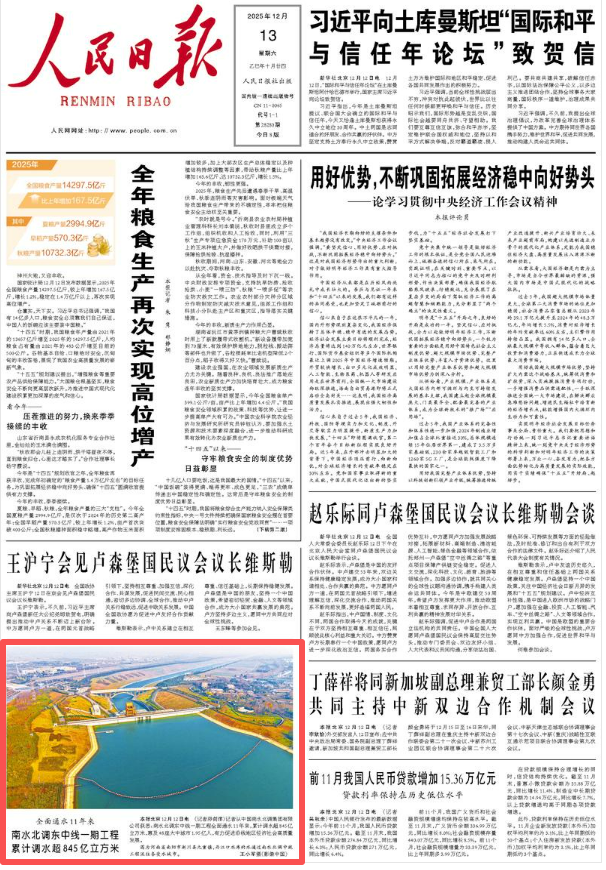 本報北京12月12日電 ?(記者鄧劍洋)記者從中國南水北調集團有限公司獲悉:南水北調東中線一期工程全面通水11年來,累計調水超845億立方米,惠及48座大中城市1.95億人,有力促進沿線地區經濟社會高質量發展。