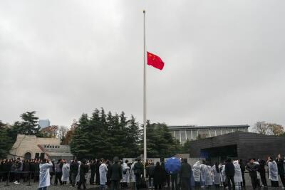 侵華日軍南京大屠殺遇難同胞紀念館舉行升國旗和下半旗儀式