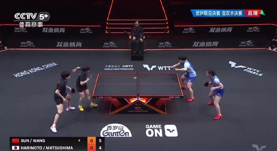 2025年wtt中國香港總決賽,12月13日下午進行了一場混雙半決賽的較量,對陣的雙方是中國的孫穎莎王楚欽和日本的松島輝空張本美和!