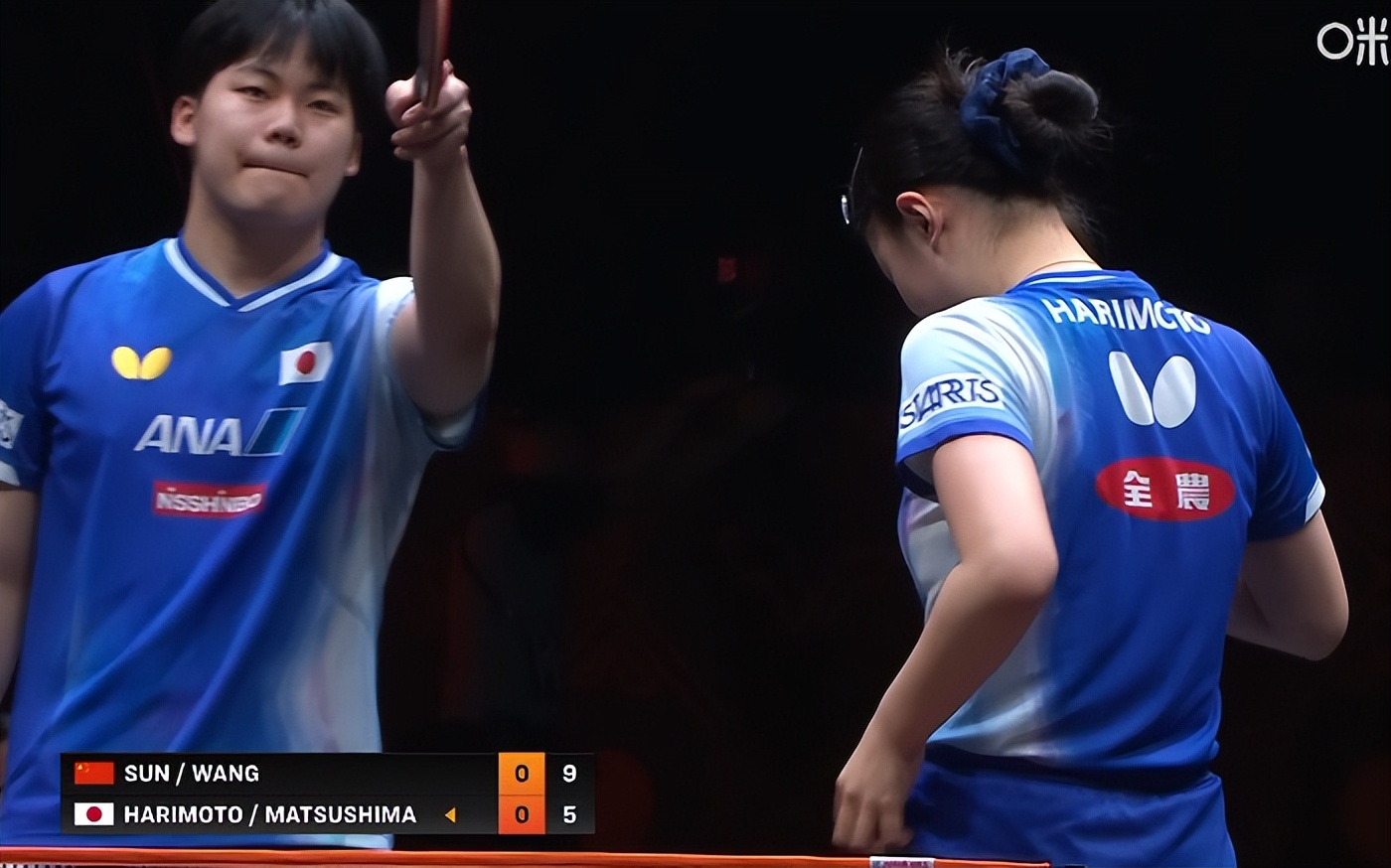 暫停回來,面對孫穎莎王楚欽的進攻,日本組合顯得辦法不多,10:4,孫穎莎王楚欽拿到本場比賽的賽點!