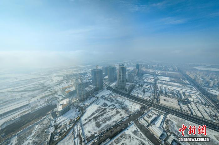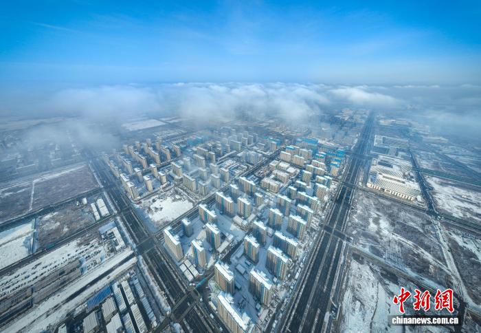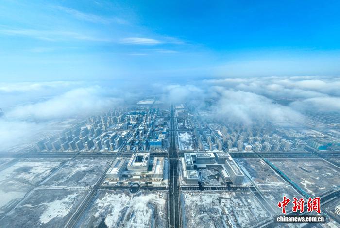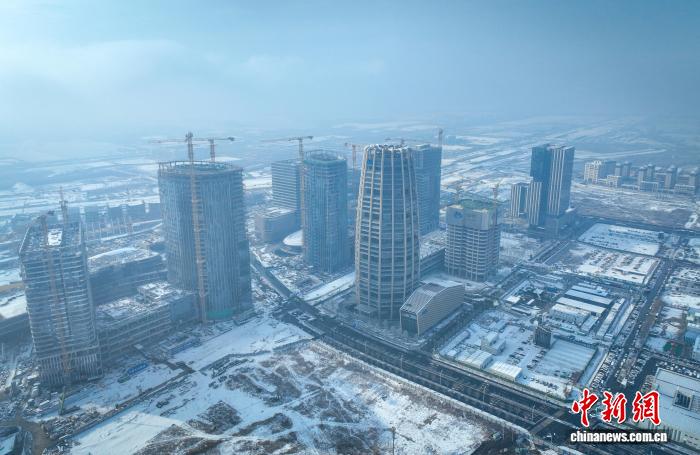 12月13日,航拍雪后雄安新區啟動區。中新社記者 韓冰 攝
