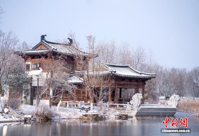 12月13日,雄安悅容公園內雪后景色。中新社記者 韓冰 攝