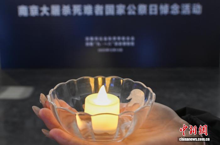 圖為在沈陽“九·一八”歷史博物館序廳內,參與公祭日悼念活動的各界代表手捧蠟燭。中新社記者 于海洋 攝