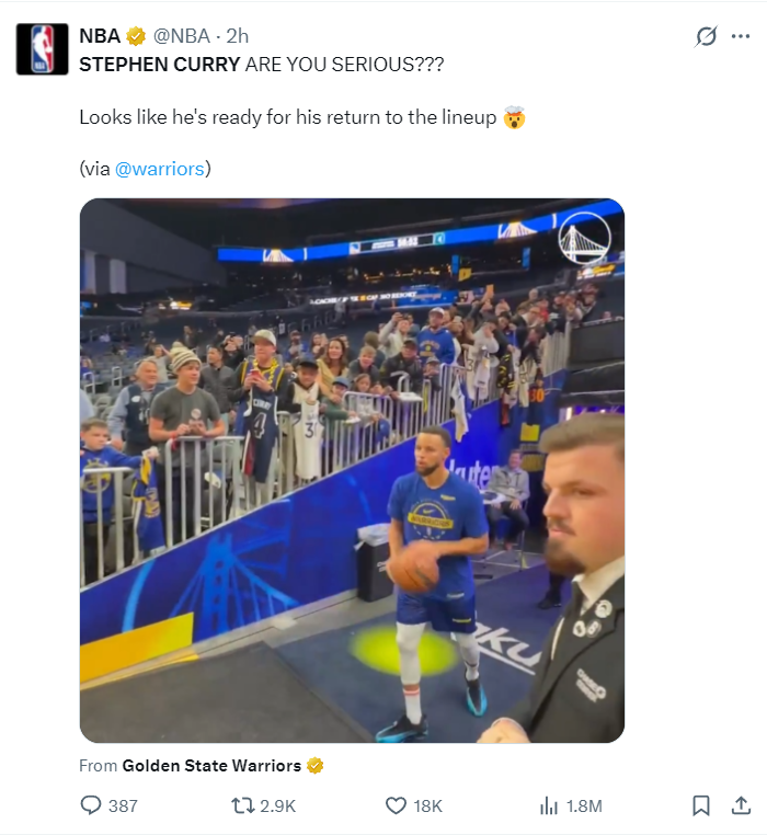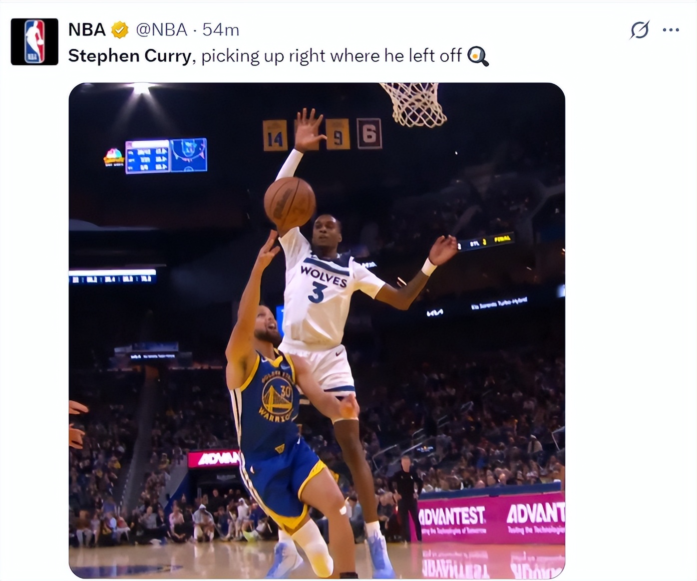 庫(kù)里傷停五場(chǎng)比賽后復(fù)出,11月27日-12月13日也就是整整16天,但斯蒂芬的三分手感依舊令人咋舌,賽前他命中一個(gè)貫穿全場(chǎng)的超遠(yuǎn)三分球,這個(gè)球在天空中是一個(gè)弧線命中。