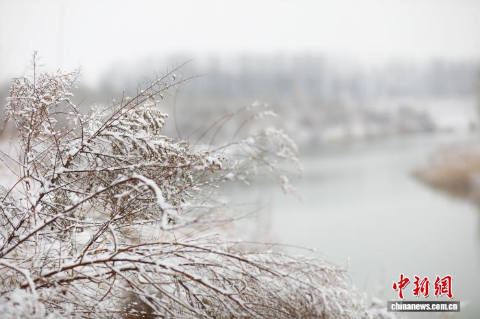 12月13日,河北南皮運河邊的植物戴上了“雪帽子”。靳東凱 攝