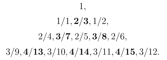 通過計算c(n)的前幾個值可以得到,存在以下近值:1,1,2/3,1/2,1/2,3/7,2/5,3/8,1/3。