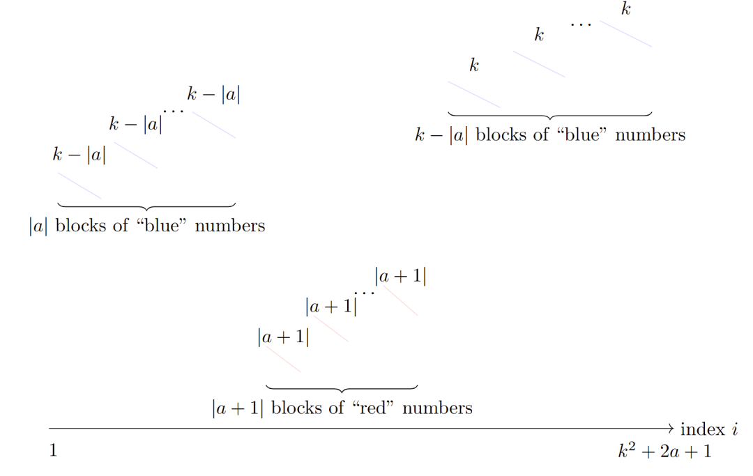 該上界通過構造不利配置的序列實現,基本思想仍然來自Erd?s–Szekeres定理,即復雜設計數字排列順序,會使得長單調序列無法同時擁有很好的權重。
