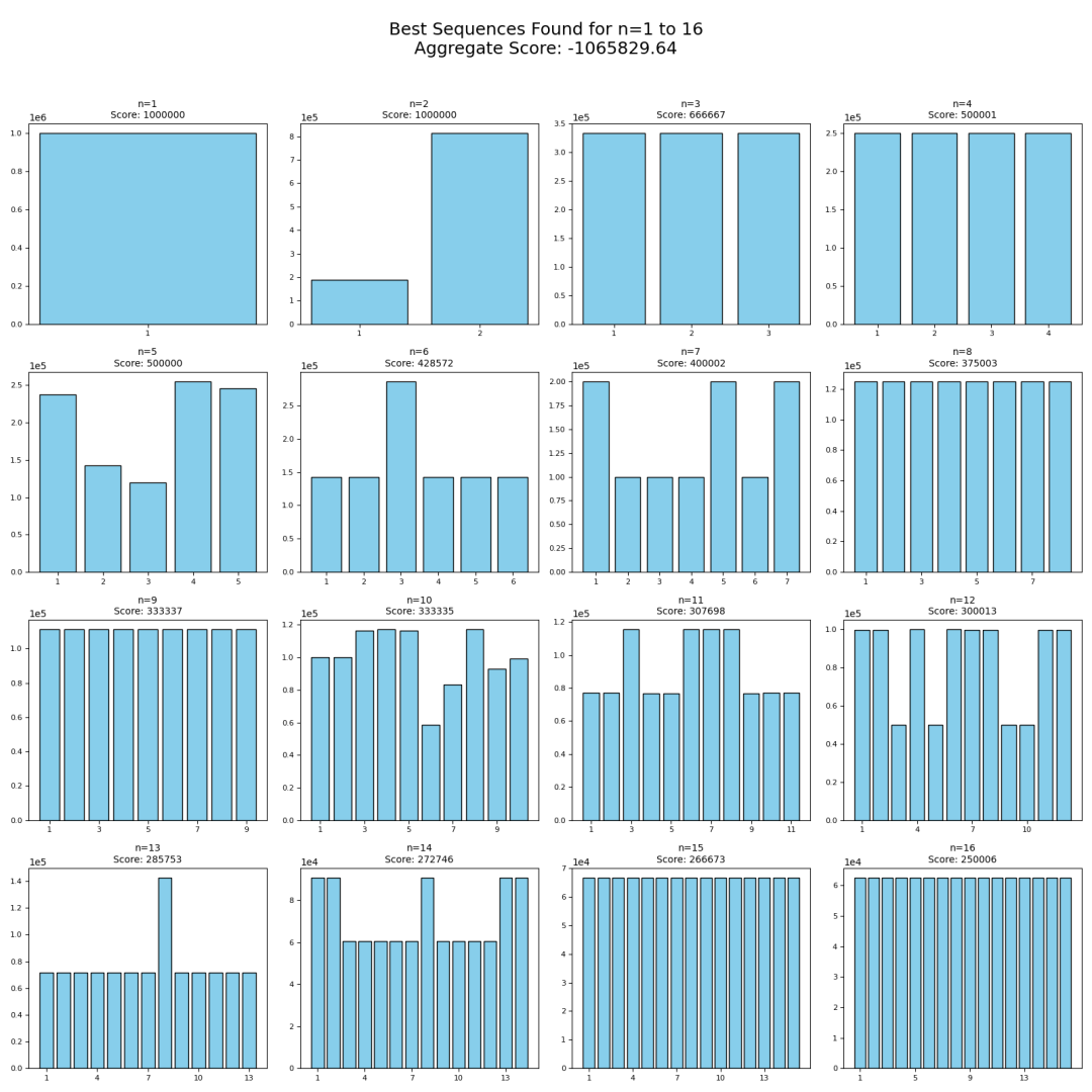 第二天,陶哲軒注意到了這個問題,他將該問題放入AlphaEvolve,要求它通過生成總和為固定值(這里選擇的是10的6次方)的實數(或整數)序列,來獲取c(n)的上界,并盡可能確保S的值夠小。
