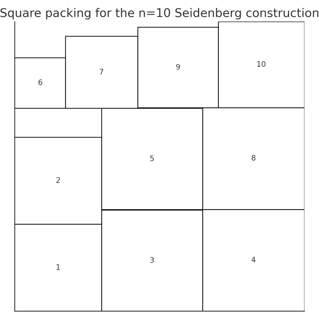 其中對于n=10時,用ChatGPT Pro生成轉換成方形打包的圖像,如圖所示: