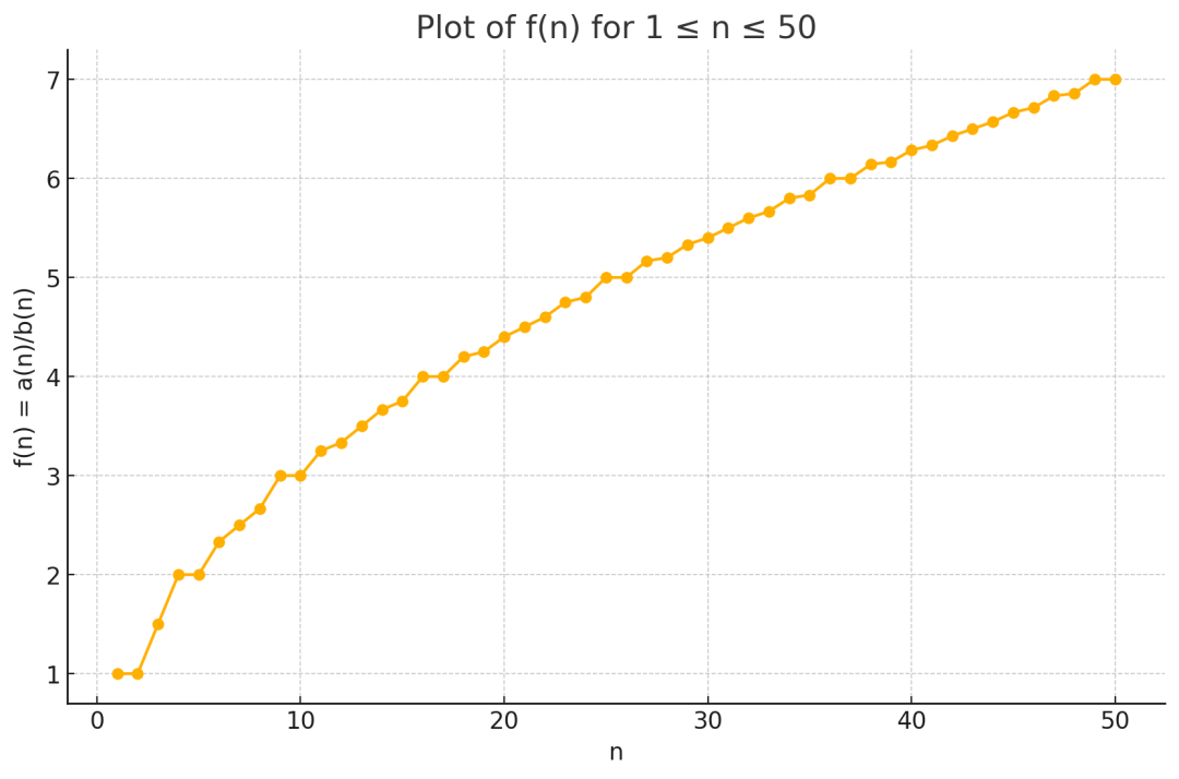 用ChatGPT Pro生成1/c(n)的圖像,能夠直觀看出,它基本上是對平方根函數的分段線性逼近。