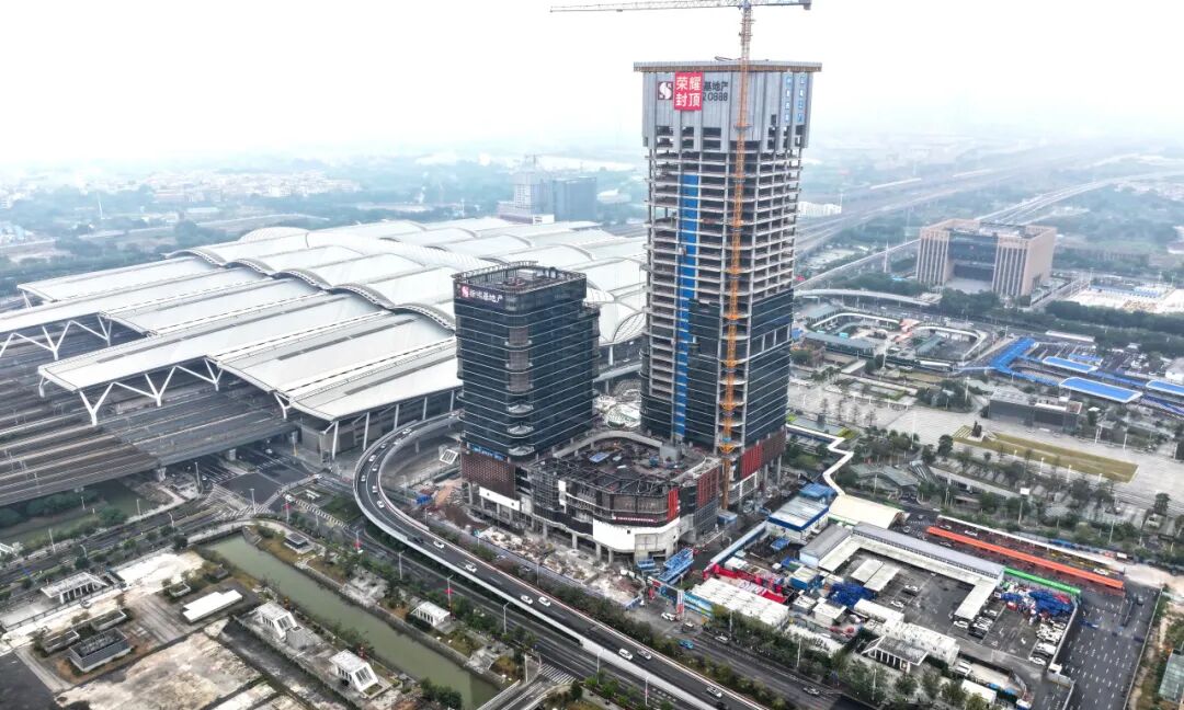 緊鄰廣州南站的商業體——廣州環球貿易廣場項目全面封頂,圖/廣州番禺發布