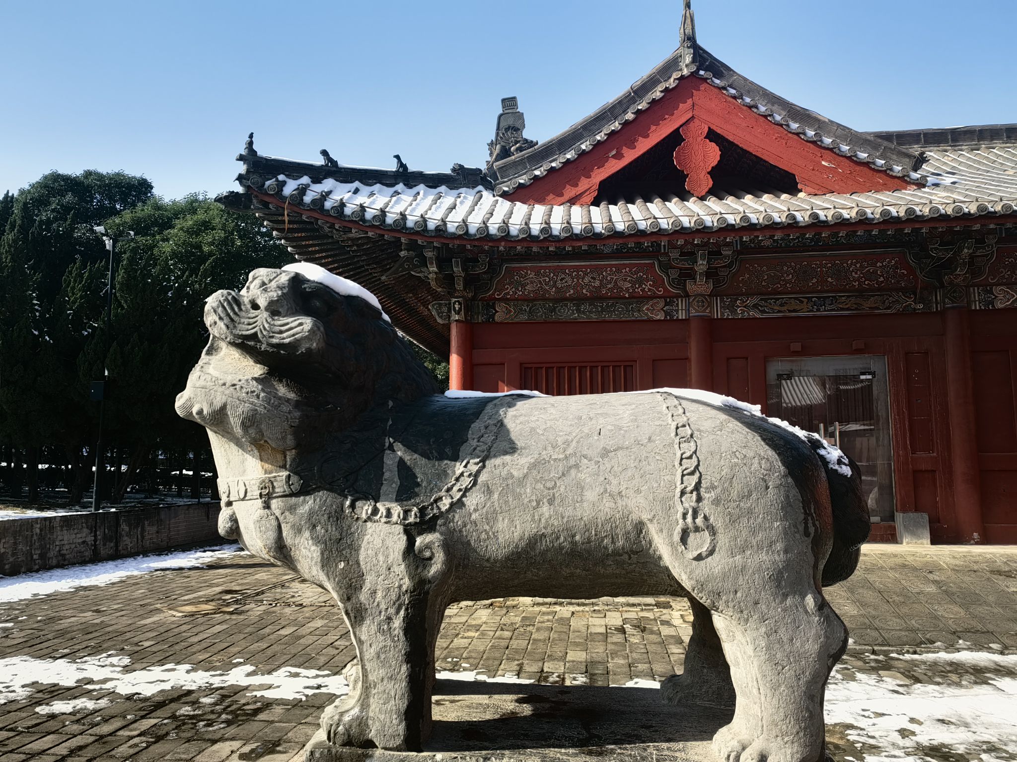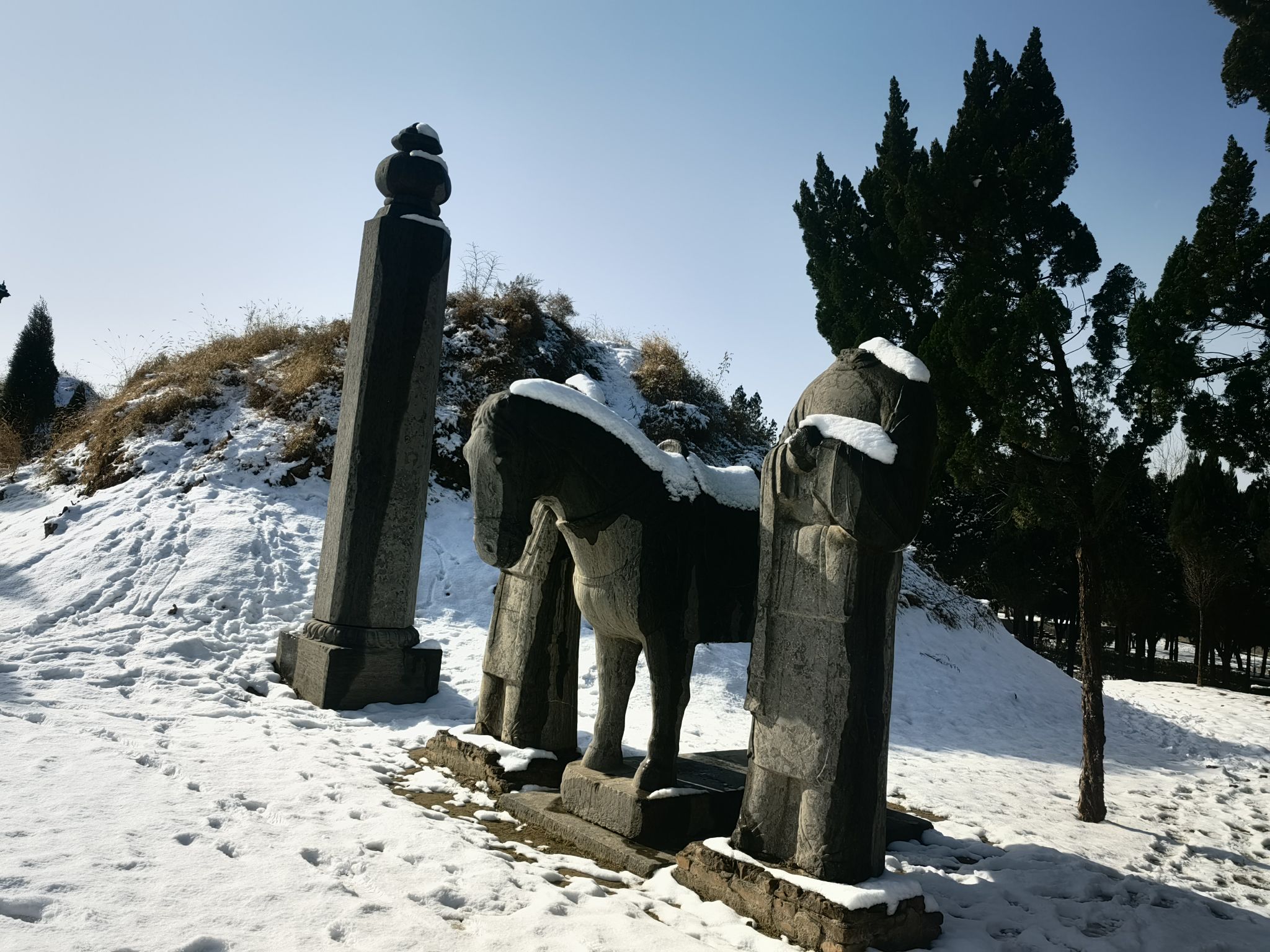 石像生在雪幕中更顯凝重,它們不僅是儀衛象征,更寄托著“如生之儀”的哲思,此刻與后代園中玩雪的人們共同訴說著生生不息的輪回。?