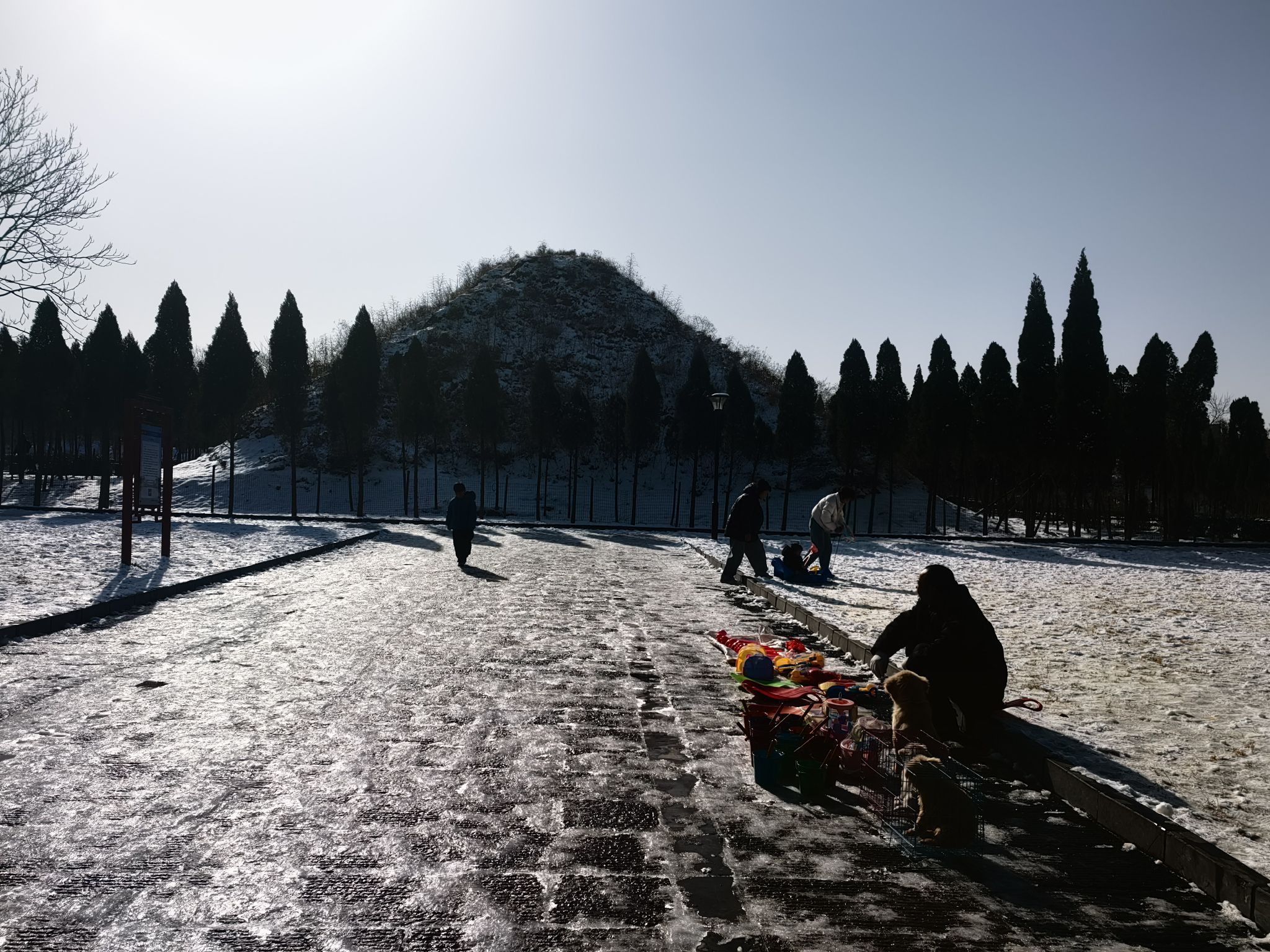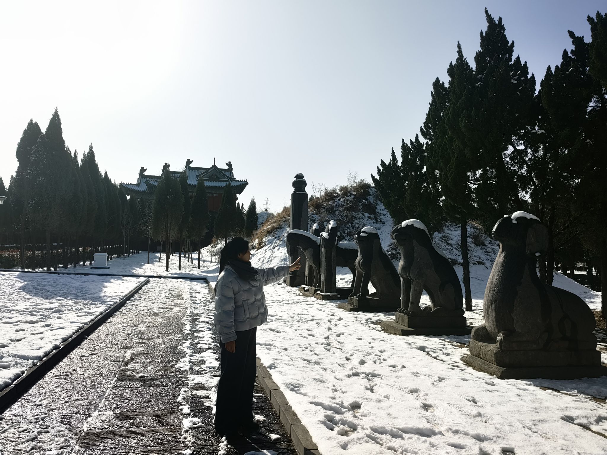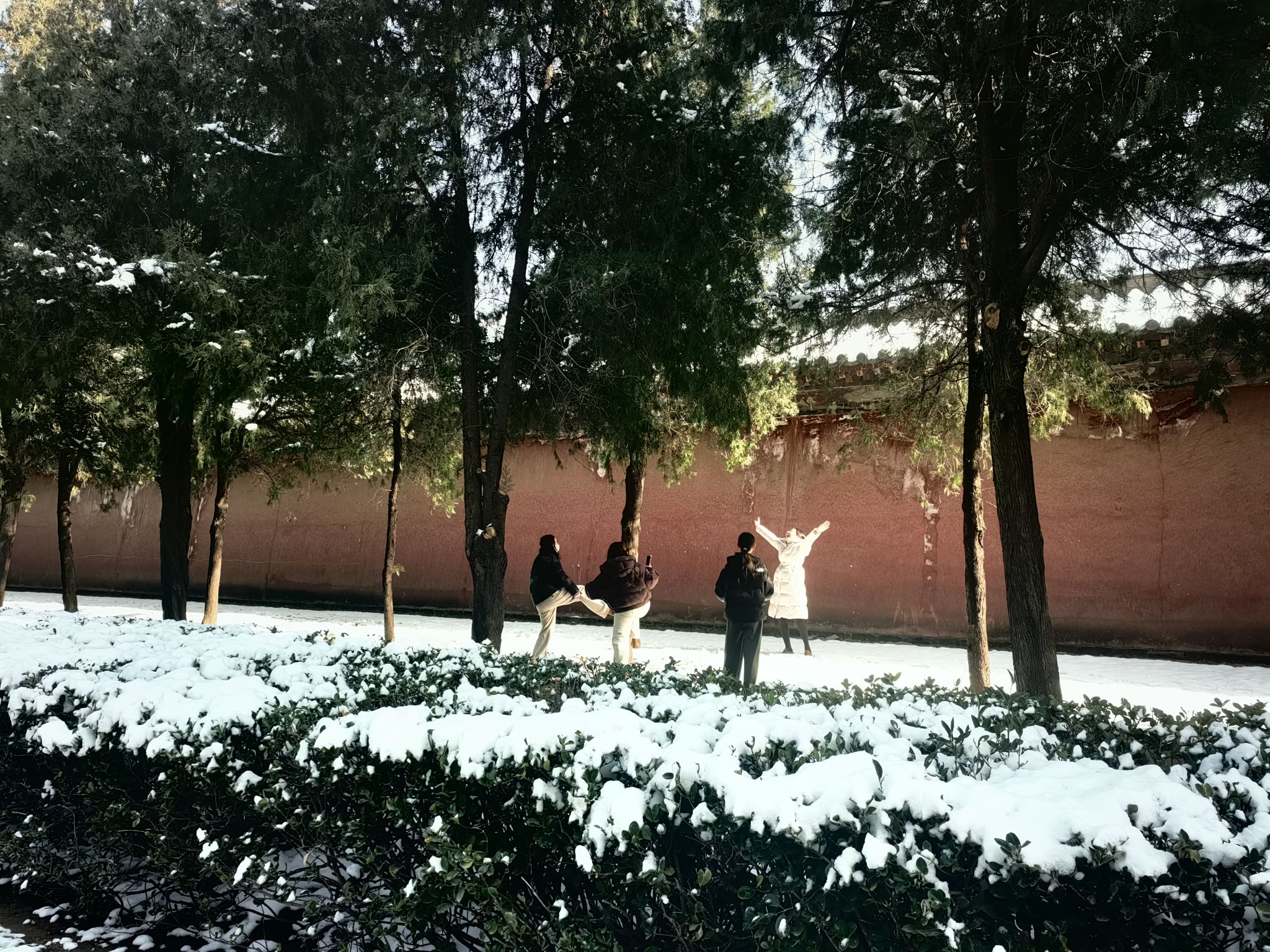 (皇帝陵圍墻外,開心拍雪景的女孩們)