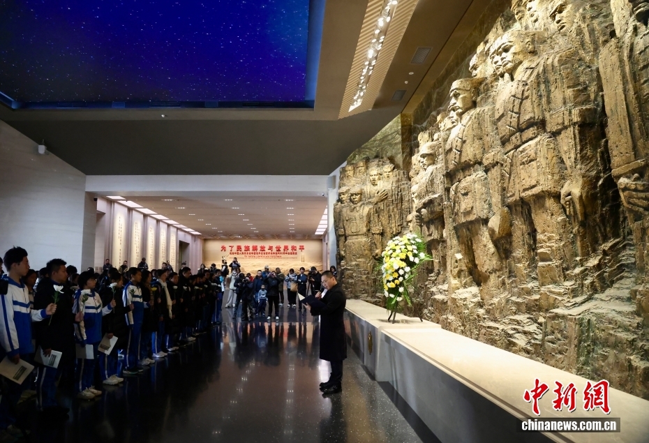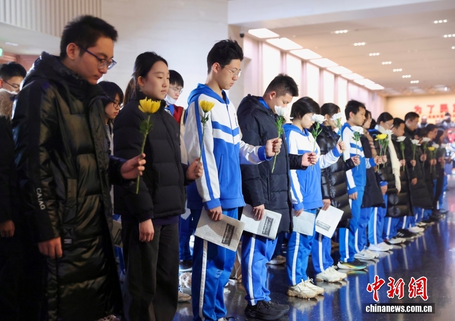 12月13日是第十二個南京大屠殺死難者國家公祭日,南京大屠殺死難者國家公祭儀式在侵華日軍南京大屠殺遇難同胞紀念館舉行,中國人民抗日戰爭紀念館在北京同步舉行悼念活動。圖為市民和學生向南京大屠殺死難者獻花。