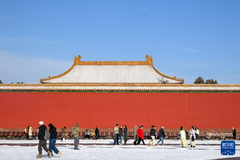 12月13日,雪后初霽,北京故宮迎來了眾多游客。人們在雪地上漫步,定格這份冬日限定的美好。