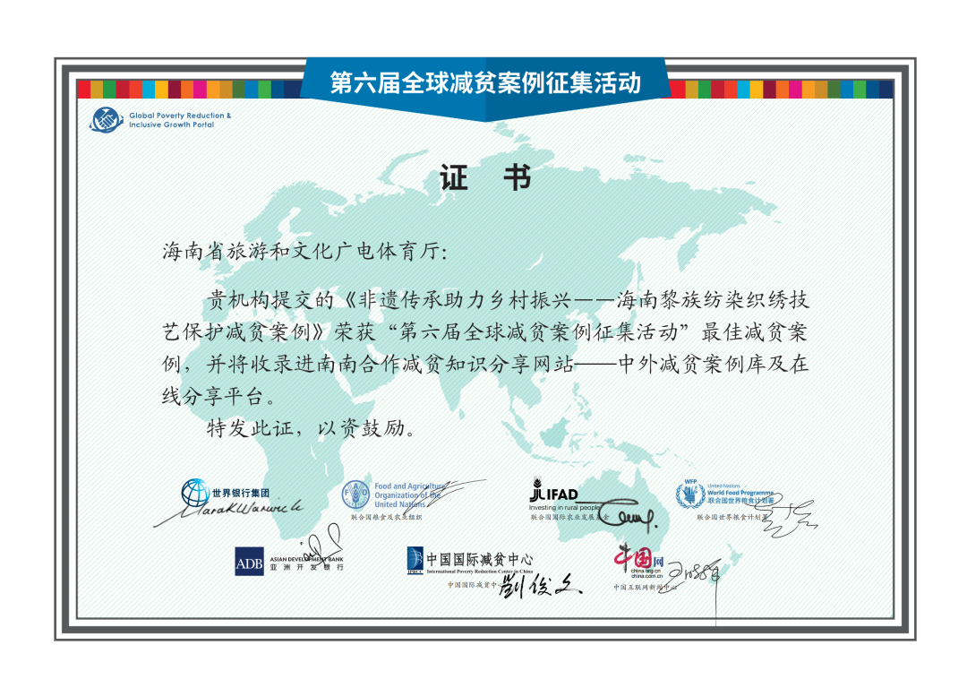 海南省旅游和文化廣電體育廳相關負責人表示,此次入選全球減貧案例,在世界范圍分享非遺保護助力鄉村振興的成功經驗,未來省旅文廳將持續完善保護體系,推動黎錦技藝創造性轉化、創新性發展。