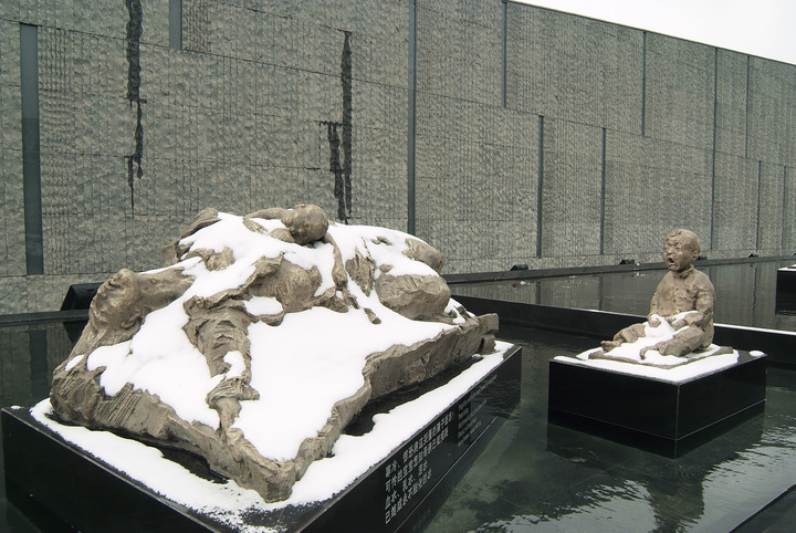在侵華日軍南京大屠殺遇難同胞紀(jì)念館,最為人熟知的雕塑是那座《最后一滴奶》:倒在血泊中的母親,嬰兒還趴在她的懷中吃奶,一旁一個(gè)年齡稍大的孩子坐在地上大哭。這是以南京大屠殺幸存者常志強(qiáng)和他的母親、小弟弟為原型而作。