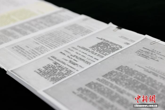 圖為在中央檔案館國家檔案局拍攝的部分俄羅斯轉交中方的蘇聯審訊日本731部隊的解密檔案材料。中新社記者 楊郁然 攝