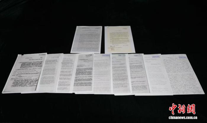 圖為在中央檔案館國家檔案局拍攝的部分俄羅斯轉(zhuǎn)交中方的蘇聯(lián)審訊日本731部隊的解密檔案材料。中新社記者 楊郁然 攝