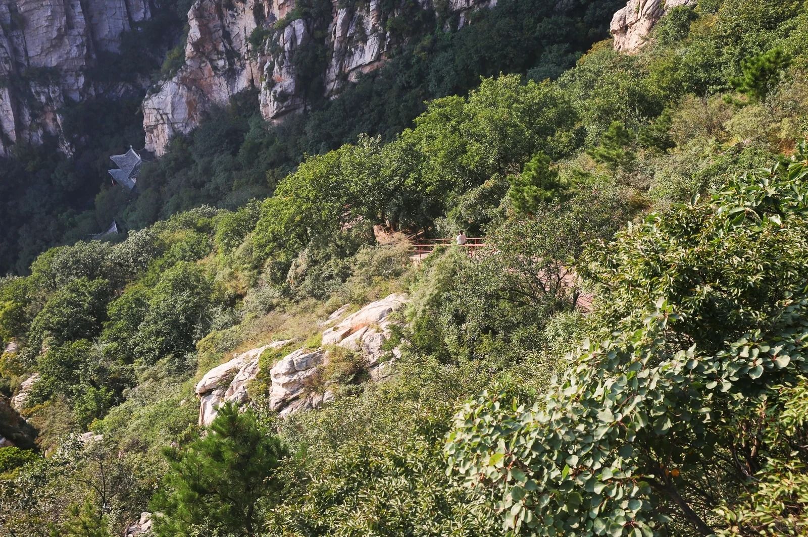 待到夕陽西下,我坐在洞外一方平石上。遠處主峰游人漸稀,而此處唯我一人。看暮靄從谷底升起,先染青灰,再暈紫金,最后群山輪廓化為黛色剪影。忽然有鐘聲從法王寺方向飄來,隔著山林,悶悶的、沉沉的,每一聲都像敲在胸腔共鳴。此刻忽然懂得古人為何愛在山中修行——并非逃避,而是在最接近天地原初律動的地方,找回生命本身的節(jié)奏。白日所見的每一道石紋、每一滴潭水、每一筆殘缺刻痕,都在暮色中融為同一首無言的史詩。