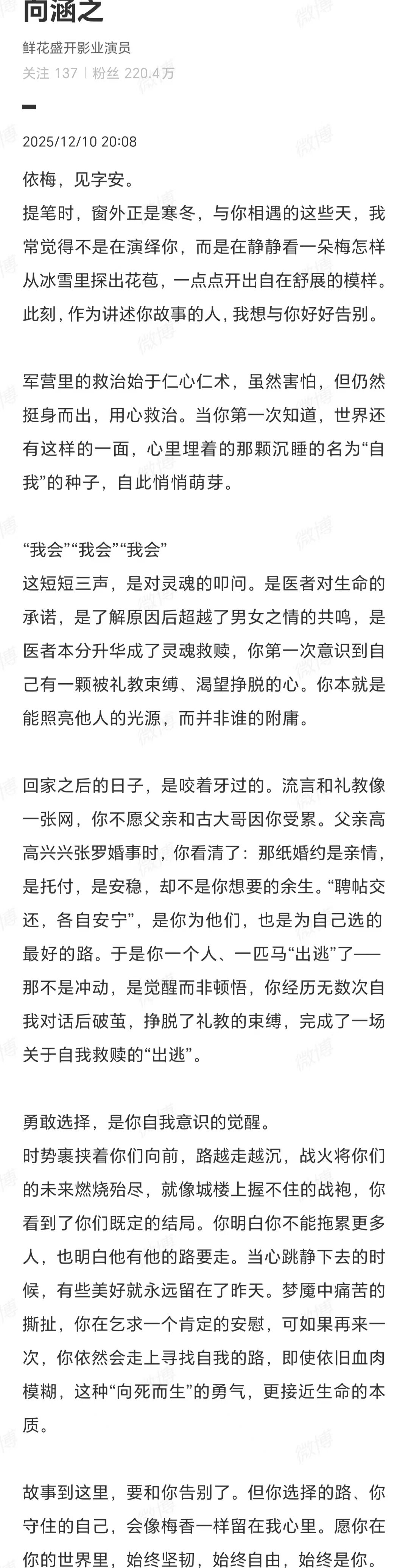 陳曉在告別文中,用橫跨四季的拍攝記憶,串聯起戲里戲外的情感共鳴,引發觀眾對劇集與演員的雙重不舍,話題一度登上熱搜。