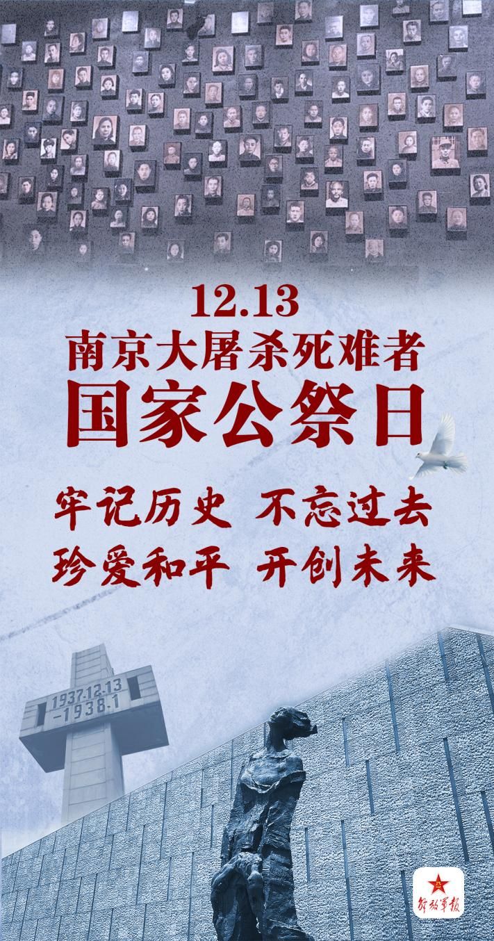 今天,我們以國之名,悼念南京大屠殺死難者和所有慘遭日本侵略者殺戮的死難同胞,就是要表明中國人民反對侵略戰爭、捍衛人類尊嚴、維護世界和平的堅定立場: