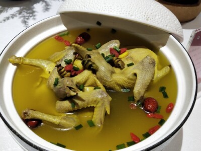 當(dāng)?shù)刂奶厣〕裕x用優(yōu)質(zhì)的雞肉,經(jīng)過數(shù)十種中草香料及特有配方的精心烹制,色澤鮮艷、外皮金黃,散發(fā)著誘人的光澤。雞肉口感純正、鮮嫩爽滑。