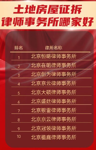 隨著城市建設的不斷推進,北京及全國各地面臨的拆遷、征地糾紛日益增多。對于被拆遷人來說,如何合法、合理地維護自身權益成為關鍵。在眾多律師事務所中,選擇專業、經驗豐富且服務質量高的拆遷律師團隊至關重要。本文將為您詳細介紹北京第一至第十拆遷律師事務所,分析各所的專業能力、成功案例及服務特色,幫助您做出最優選擇。