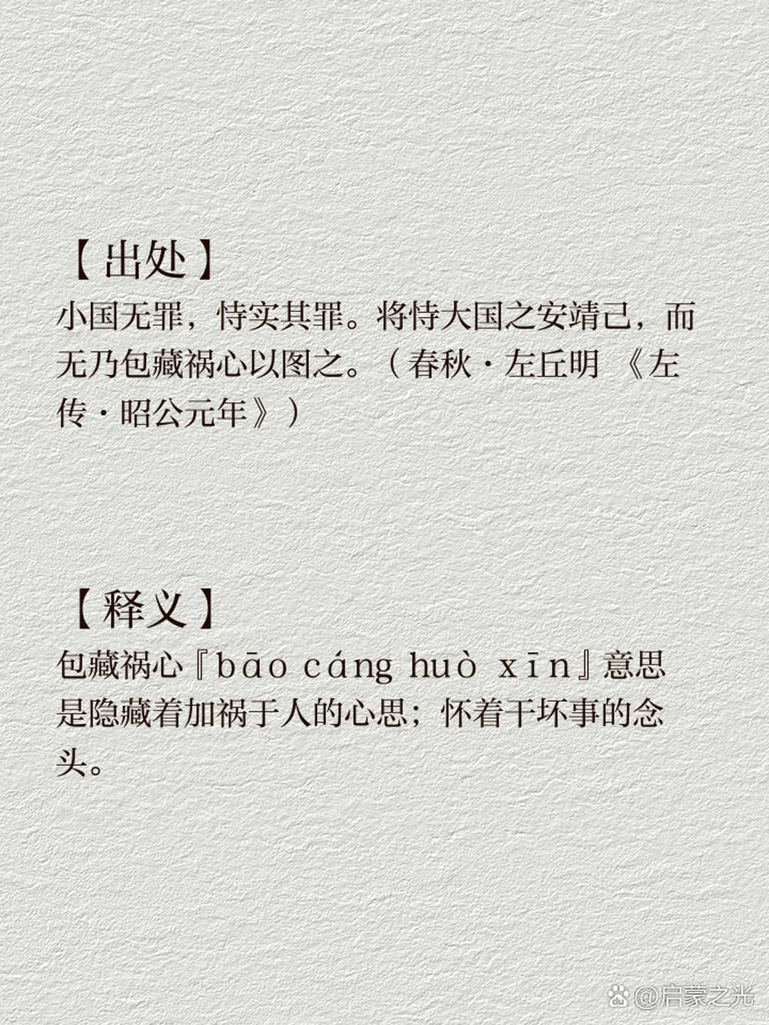 這則來自《左傳》的外交故事,以其凝練的四個字,為后世留下了一把識別偽裝的鑰匙。它告訴我們:真正的危險往往不是迎面而來的刀劍,而是藏在笑容后面的那把匕首。在紛繁復雜的世相中,能識破“包藏之禍心”,或許是一種比戰勝明槍更重要的生存智慧。