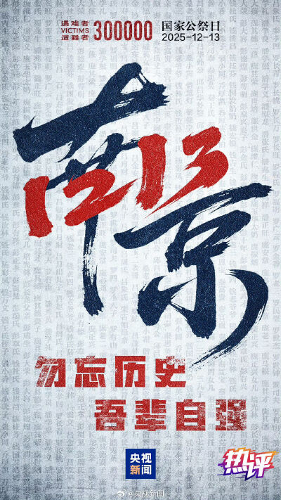 12月13日,南京大屠殺死難者國家公祭日。2014年這一天,在首個南京大屠殺死難者國家公祭儀式上,習近平總書記強調:“忘記歷史就意味著背叛,否認罪責就意味著重犯。”