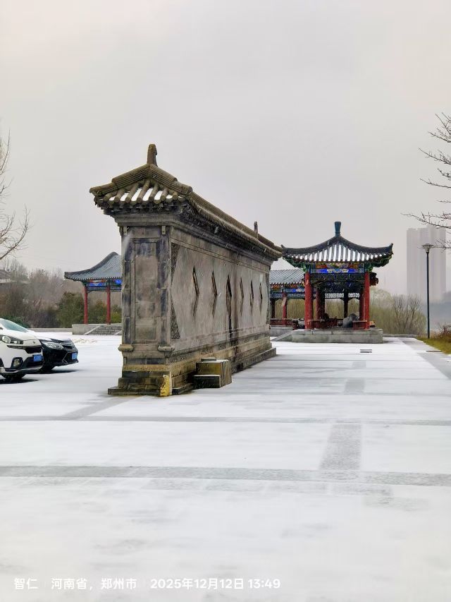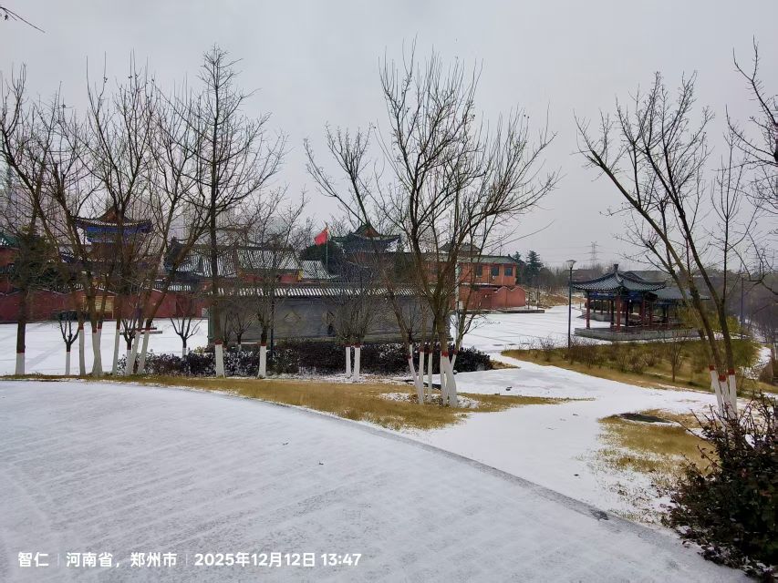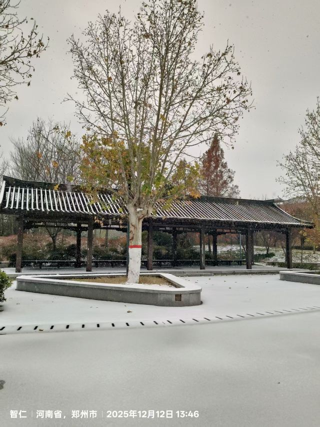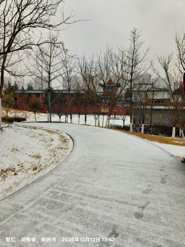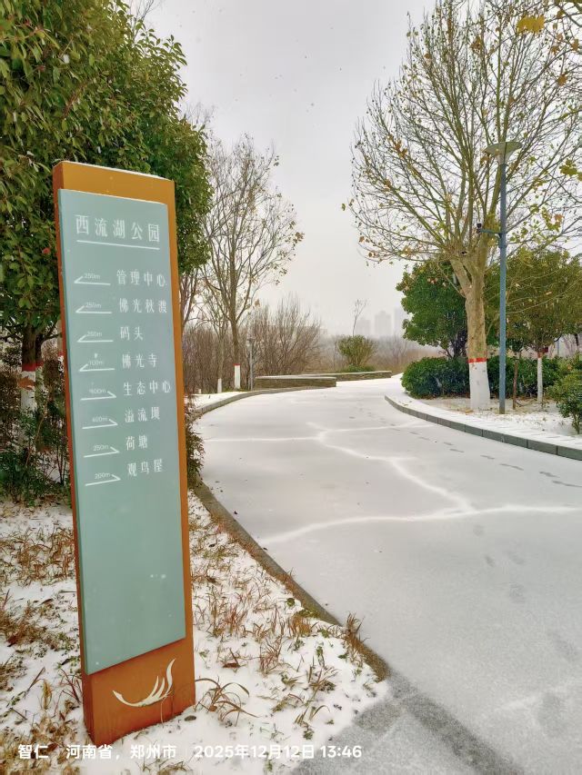 到鄭州西流湖公園觀賞雪景。25.12.13日。紅連兒打卡。