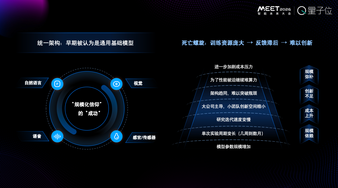 但它現(xiàn)在進入到一個死亡螺旋的狀態(tài),帶來一個問題——為了讓模型能力足夠突出我們要加大算力、加大數(shù)據(jù),帶來成本極大提升。大家和競爭對手都在做同樣的事情。