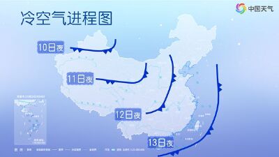 中央氣象臺12月13日6時繼續發布寒潮藍色預警:受寒潮影響,預計12月13日8時至12月14日8時,江淮大部、江南中東部和南部、西南地區東南部、華南大部等地部分地區氣溫將下降6~8℃,其中,安徽南部、江西東部、浙江西部、福建西部等地部分地區降溫可達10℃。