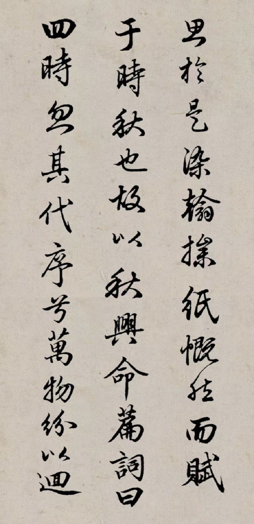 思。于是染翰操紙,慨然而賦。于時秋也,故以“秋興”命篇。其辭曰:四時忽其代序兮,萬物紛以回