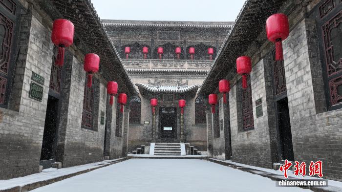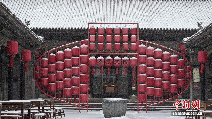 喬家大院燈籠陣裹雪而立,艷紅壓素白,雪落間襯出古院冬韻。劉洋 攝