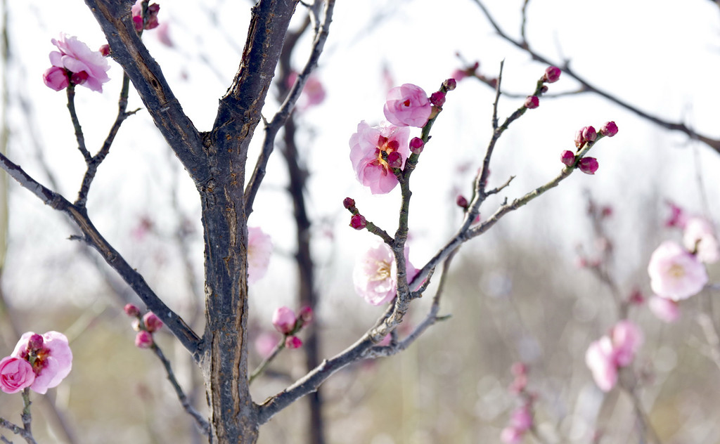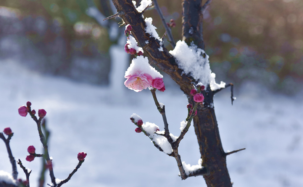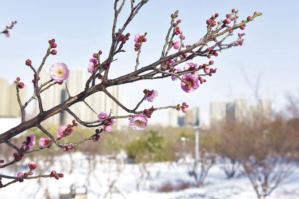 西流湖公園:傲雪寒梅俏枝頭雪景如畫醉游人