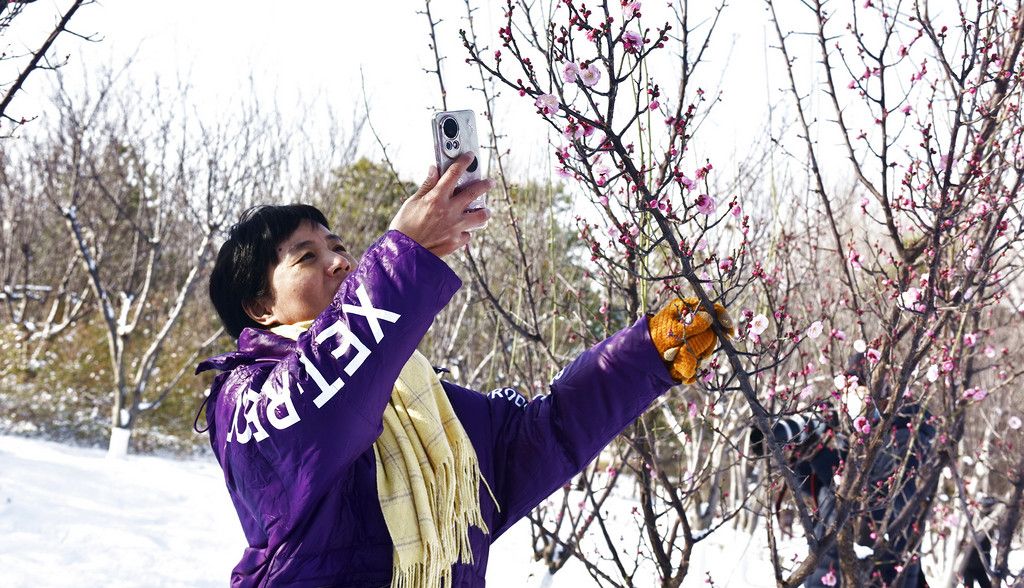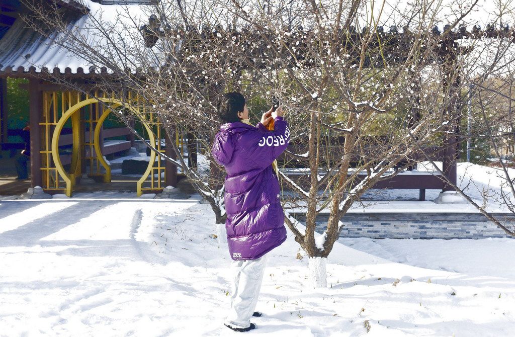 2025年12月13日,昨日一場雪,今日處處景,雪過天晴,天空如洗,大地處處銀裝素裹,鄭州西流湖公園千金梅嶺綻放的梅花,不僅迎來游人踏雪而來拍照留影,也迎來攝影愛好者前來拍攝。千金梅嶺盛開的梅花與公園里銀裝素裹的青松、亭閣、白雪相映成景,構(gòu)成一幅美麗的冬日畫卷。