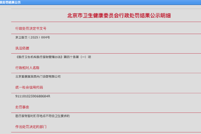 紅星資本局注意到,北京市衛(wèi)健委官網(wǎng)也公示了對(duì)西內(nèi)門診部的處罰。