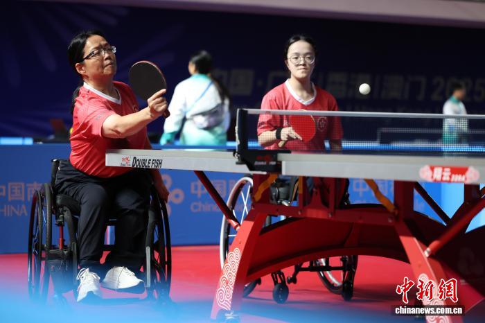 圖為中華人民共和國第十二屆殘疾人運動會暨第九屆特殊奧林匹克運動會“南方電網杯”乒乓球比賽在廣州舉行,香港運動員黃佩儀/袁泳琪在TT5女子雙打小組賽A組比賽中。記者 陳楚紅 攝