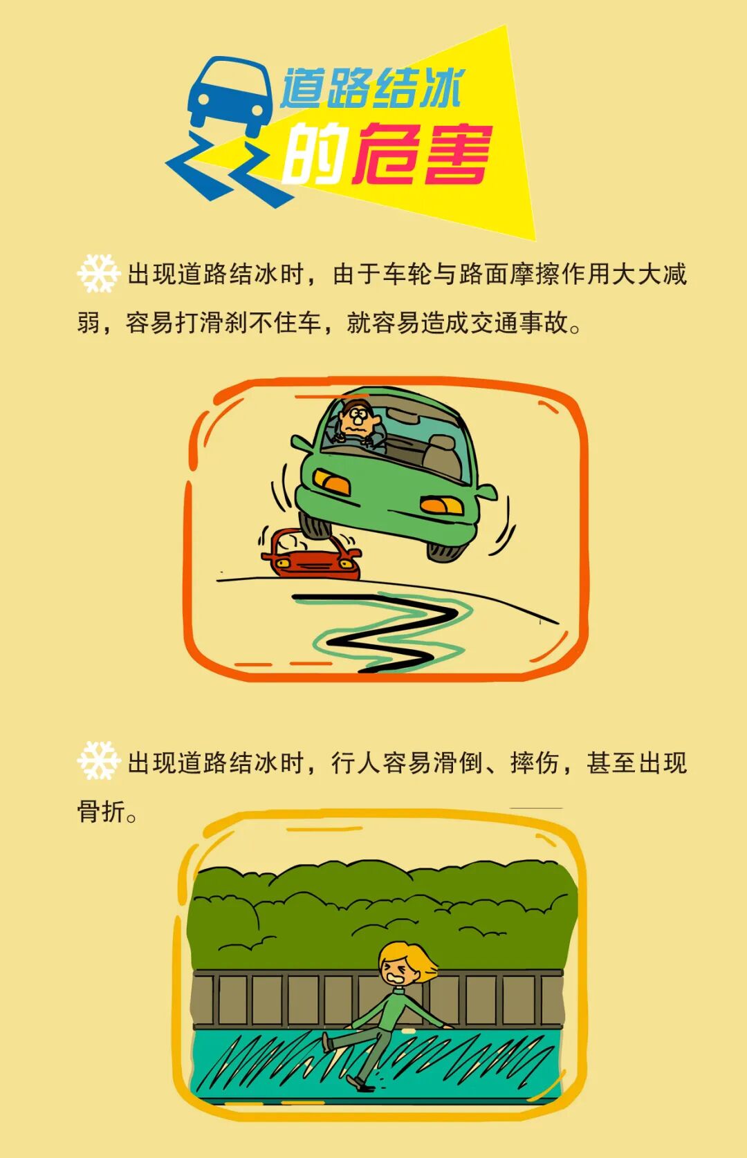 道路結冰?是指降水(如雨、雪、凍雨或霧滴)碰到溫度低于0℃的地面而出現的積雪或結冰現象。通常包括凍結的殘雪、凸凹的冰轍、雪融水或其他原因的道路積水在寒冷季節形成的堅硬冰層。道路結冰一般分為兩種情況,一種是降雪后立即凍結在路面上形成的道路結冰;另一種是在積雪融化后,由于氣溫降低而在路面形成的結冰。