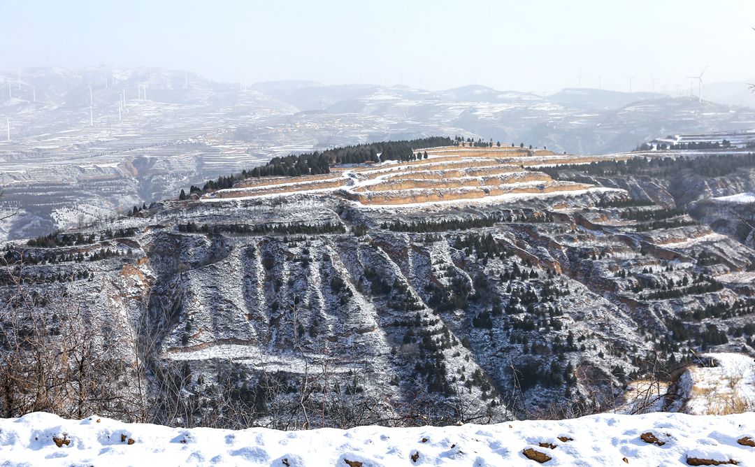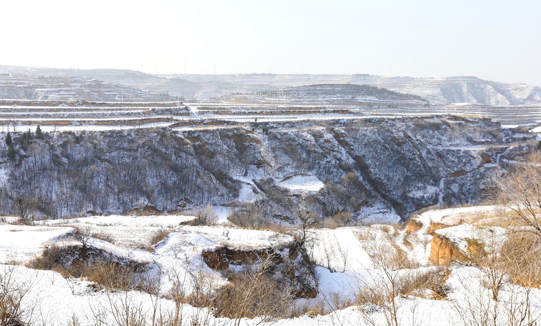 2025年12月13日,雪后初霽,夏縣廟前鎮(zhèn)山區(qū)鄉(xiāng)村銀裝素裹。層層梯田與縱橫溝壑覆上皚皚白雪,宛如一幅壯美的生態(tài)畫圖。(特約攝影 張秀峰)