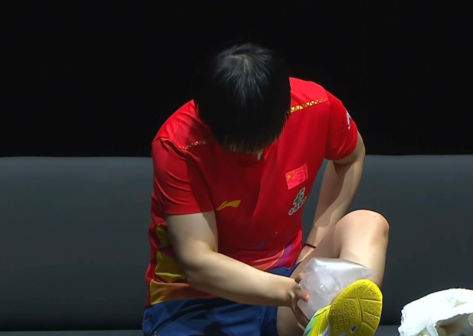 第三局4平,孫穎莎通過旋轉去限制蒯曼,自己也可以盯住蒯曼的長球,這讓孫穎莎越打越開,7-4擴大分差。不過局末蒯曼依然堅持長球,保持堅決發動,咬回9平。維持10平,孫穎莎接發失效,蒯曼還是一個大斜線,12-10拿下這局。這一局結束,孫穎莎申請醫療暫停,左腳有點不適。