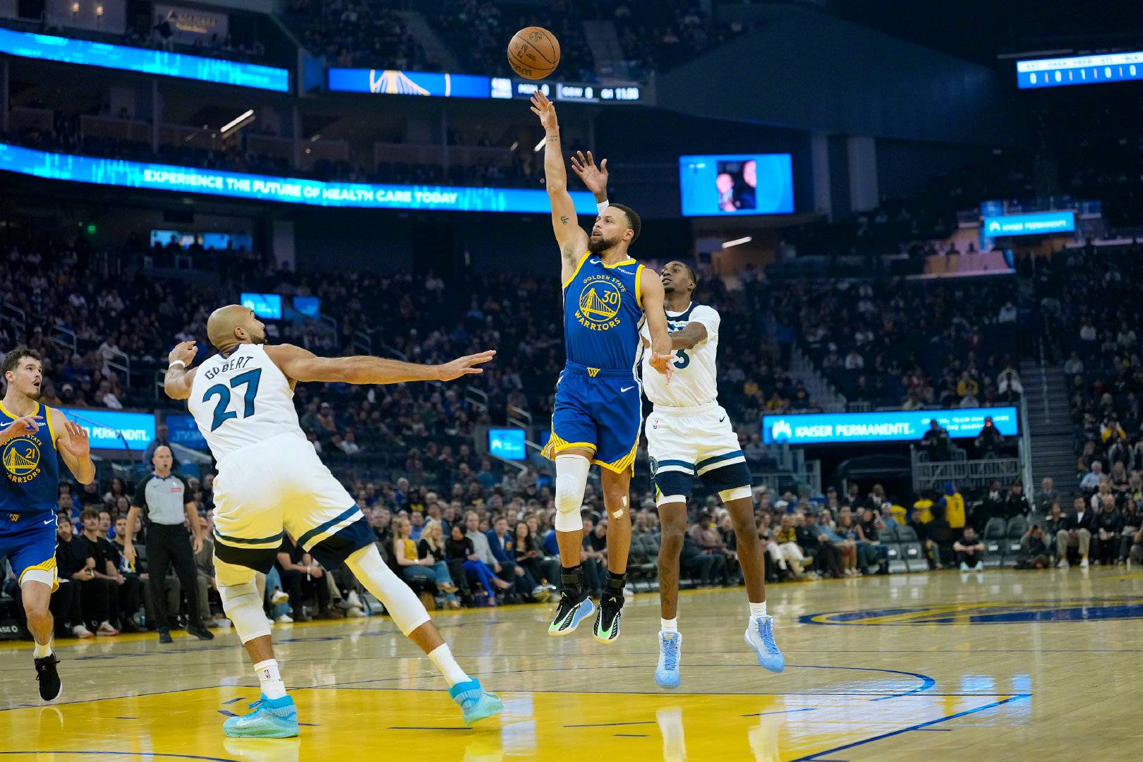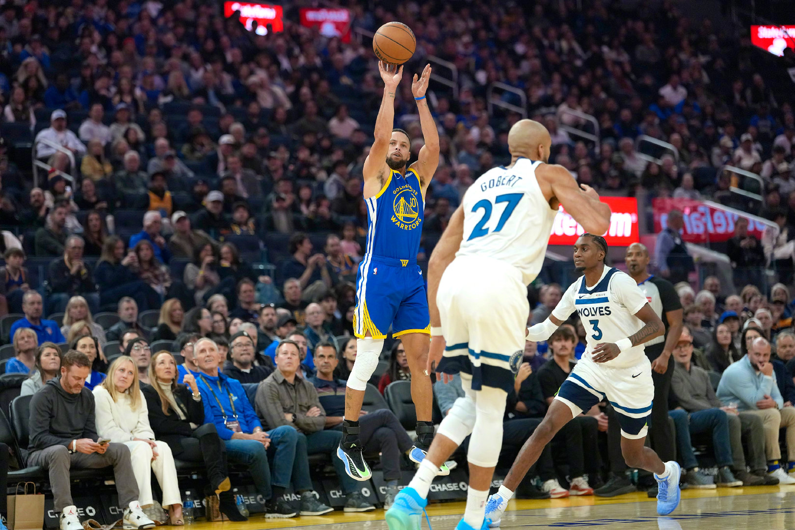 畢竟這家伙,自帶復出Buff。值得一提的是,面對今天的對手森林狼,庫里穿上了對面核心愛德華茲的球鞋。但問題是,今天愛德華茲休戰了。甚至,愛德華茲的替補海蘭德在首節比賽中也遭遇膝蓋挫傷退賽。所以一時間,場上的的對陣變得非常奇怪。森林狼那邊全是大個子,鋒線群儲備異常兇猛。勇士隊則全是小個子,極致的五小對陣極致的五大。不過,雖然身高有差距,但勇士隊有庫里啊!比賽一開始,就是庫里先聲奪人幫助勇士隊取分,手感來得很快。很快,庫里的三分也來了,個人連得8分。庫里滾燙的手感,讓森林狼不得不火速調整一下防守策略。
