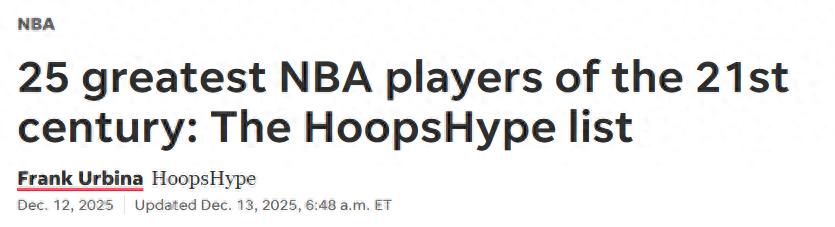 庫里第5名!在新賽季開打25場比賽后,美媒《hoopshype》適時更新公布21世紀(jì)25大巨星名單,其中哈登12杜蘭特4,科比屈居第二。