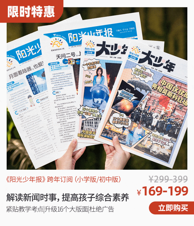 到手一份《陽光少年報》,就相當于一起拿下了全年份的通識期刊,一整年的作文素材庫,世界前沿的新聞寶藏庫。