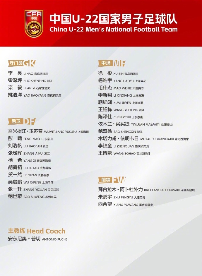 從這份大名單來看,【門將】李昊(青島西海岸)、霍深坪(浙江)、欒毅(石家莊功夫)、姚浩洋(重慶銅梁龍);門將有4位入選,大家爭論不大,再來看后衛有哪些?吾米提江?玉蘇普(上海海港)、彭嘯(山東泰山)、劉浩帆(浙江)、張瑗暉(浙江)、楊希(青島西海岸)、胡荷韜(成都蓉城)、賀一然(長春亞泰)、吳啟鵬(上海申花)、張一軒(青島紅獅)、鮑世蒙(蘇州東吳),大家在以上這份名單尋找幾個熟悉的身影,一直沒有看到,他們是誰?