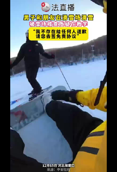 男子和朋友在滑雪場滑雪,被雪場稽查質(zhì)疑在教學(xué)